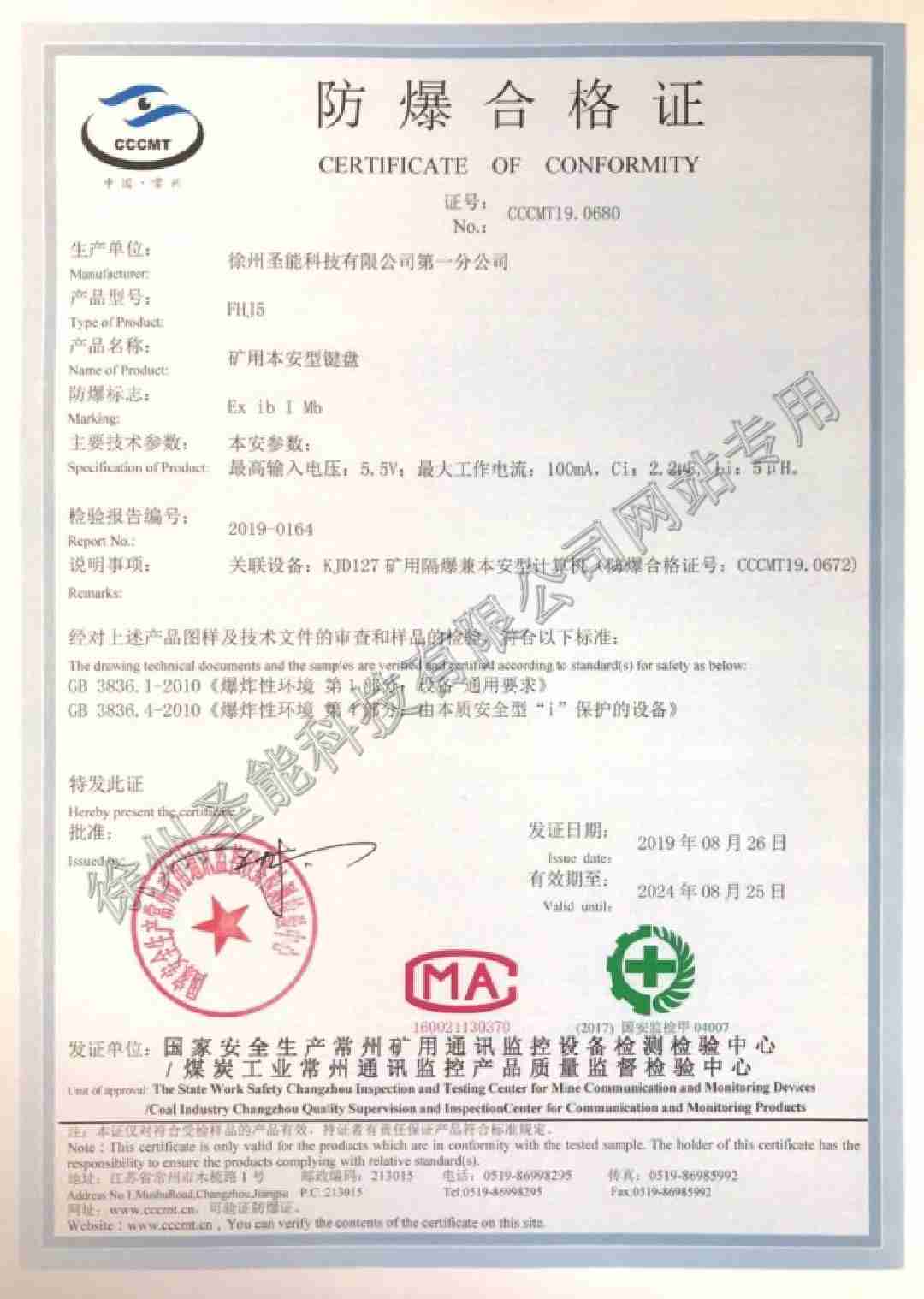 上一篇:FHJ5礦用本安型鍵盤煤安證
